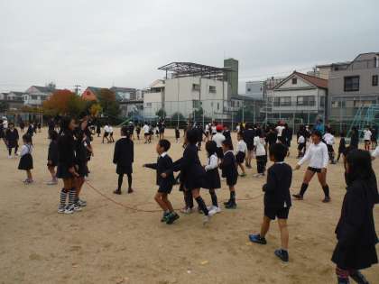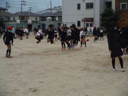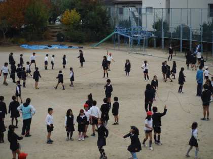 今日から木曜日まで、20分休憩を利用して、たてわり班ごとに遊びを通して交流を図るという取り組みが始まりました。本日は、なわとび運動をしました。