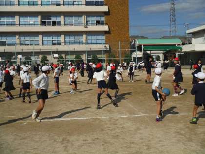 20分休憩を利用した遊び週間の2日目は、たてわり班ごとにドッジボールをしました。高学年の児童は、自分より学年が下の子には優しいボールを投げて皆が楽しめるように配慮する姿が見られました。
