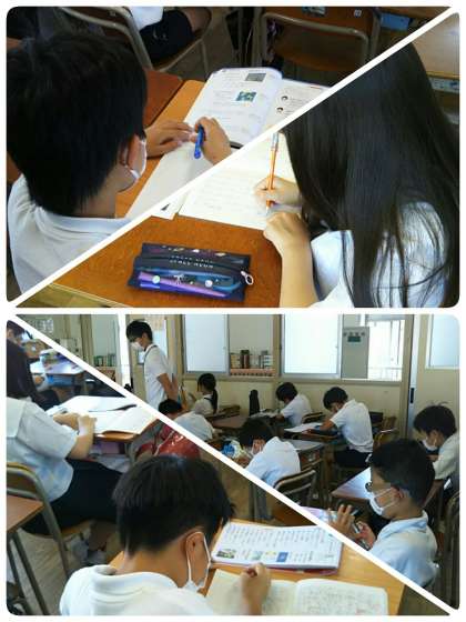 6年生が漢字学習をしていました。ドリルの書き取り問題をノートに繰り返し書きます。さすが6年生です。しっかりした文字で書き取っていました。