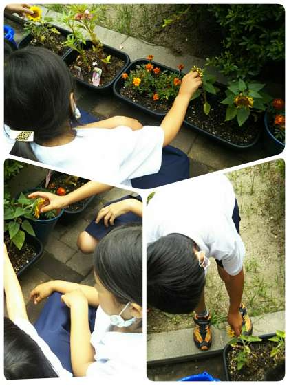 植物観察です。葉や茎の大きさや形、手触りなど、観察をするときの観点を学習しました。