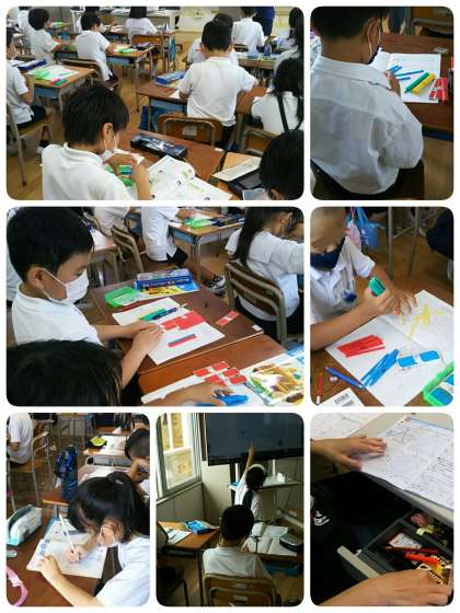 2年生が、数え棒を使って2けた+1けたの計算にチャレンジしています。