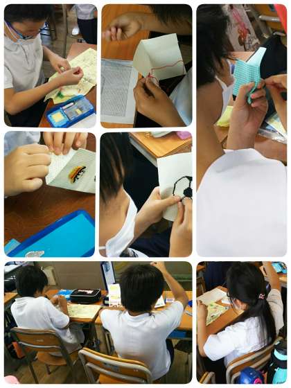裁縫の基本練習として、玉結びや波縫い、かがり縫いなどにチャレンジしています。