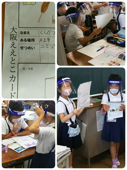 探し出した大阪の良い点や名物をカードに書き、班で教えあいます