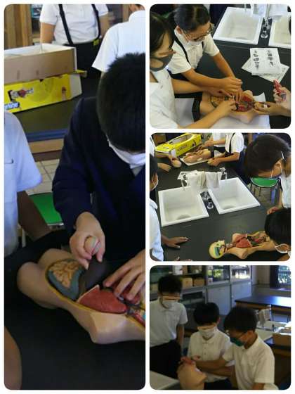 6年生が人体模型を使って、ヒトの体のつくりを調べています。