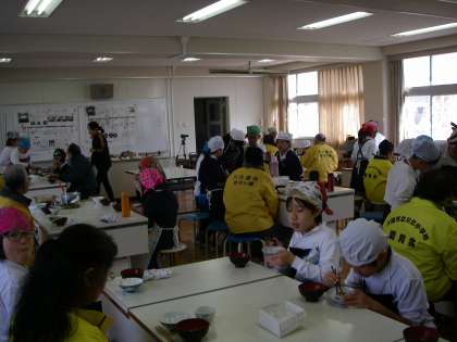 川北小の田で収穫した稲穂を、乾燥させ脱穀精米したお米を昨日いただきました。自分たちの手で育て、炊き出した米飯は格別美味しかったようです。また、田植えから脱穀精米までお世話になった愛育会の方々をお招きし、自分たちの手で料理したお味噌汁を添えて楽しくいただくことができました。