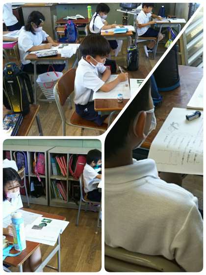 テスト用紙と教科書の両方を見るので、ちょっとたいへんです。