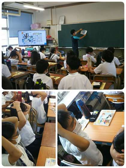 先生が英語で教科名を言い、キーワードとなる教科名が出たら、素早く消しゴムを取ります。