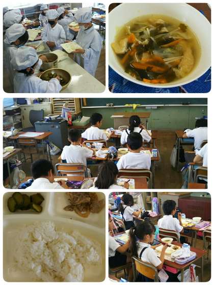 【ごはん・牛乳・豚肉のごまだれ焼き・五目汁・きゅうりのおかかあえ】