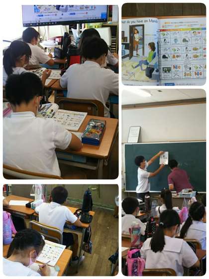 好きな教科をビンゴ用紙の好きな場所に英語で書いたり、簡単な絵で表したりします。