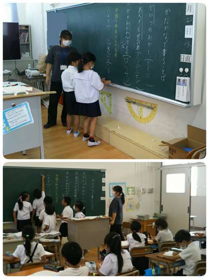 先生が言った言葉を代表児童が黒板に書きます。