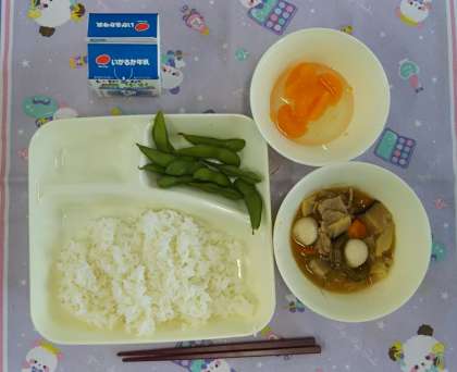 【ごはん・牛乳・八宝菜・えだまめ・みかん(缶)】