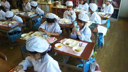 先生が「よく噛んで、飲み込むときは慌てない」よう注意喚起をするクラスもありました。