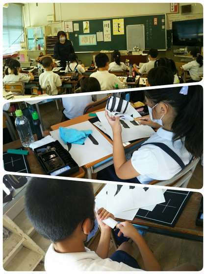 練習で使った半紙を利用して、筆についた汚れをある程度落とします。