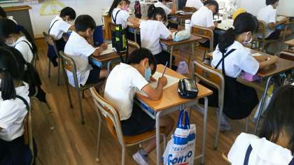 もう一枚は、同じく4年生が、算数科(図形)のテストを頑張っているところです。