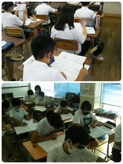 問題文をよく読んで、やや緊張した面持ちでがんばりました。