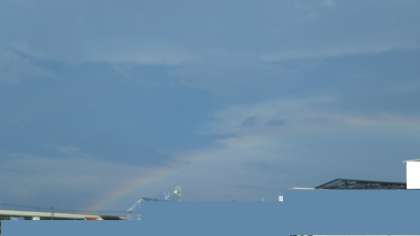 声をかけられ外を見ると、東の空に虹が出ていました。