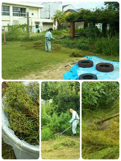 9月10日 環境整備 公開日 2020/09/10 更新日 2020/09/10 お知らせ 今日も管理作業員さんが校庭の整備をしてくださっています。 他の学校の管理作業員さんも加わり、乱雑に生い茂った草を刈ってくださいました。 学習園まわりがきれいになっていきます。