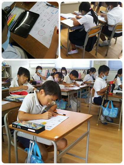 書き終わったら、色塗りをします。集中して静かに取り組みます。