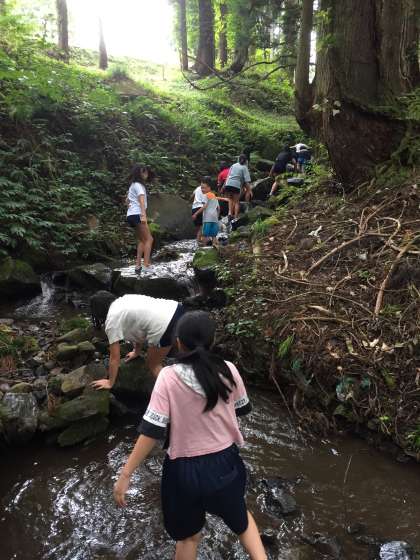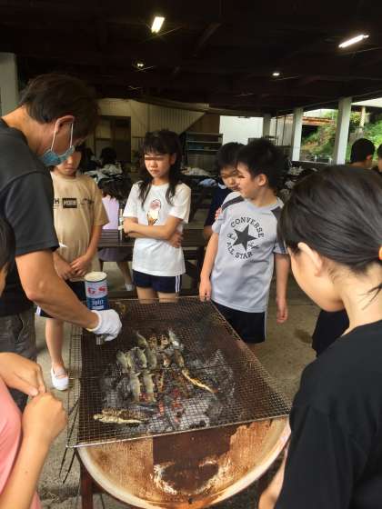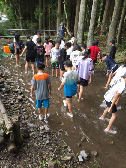 9月23日 林間学習 沢登り・魚つかみ 公開日 2020/09/23 更新日 2020/09/23 お知らせ 雨は上がって、沢登りと魚つかみをしました。 現地は、水はひんやり、やや肌寒い様子ですが、 子どもたちはキャーキャー言いながら楽しみ、 魚を焼く炭火で暖をとる児童もいたそうです。 宿舎の方がすぐにお湯をはってくれるとのことで、この後すぐにお風呂の時間となります。