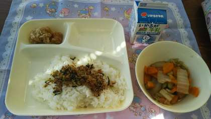 【ごはん・牛乳・鶏肉のたつたあげ・