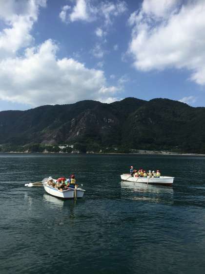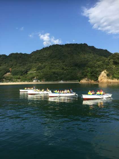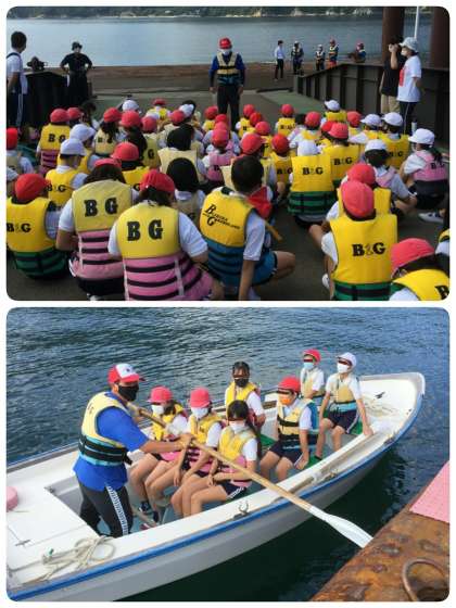 「イチ、ニ。イチ、ニ。」あるいは「エイ、オー。エイ、オー。」などと声をかけて漕ぎます。
