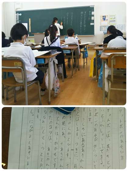 以前作った、ゴムや風の働きで動くおもちゃの遊び方を説明する学習です。