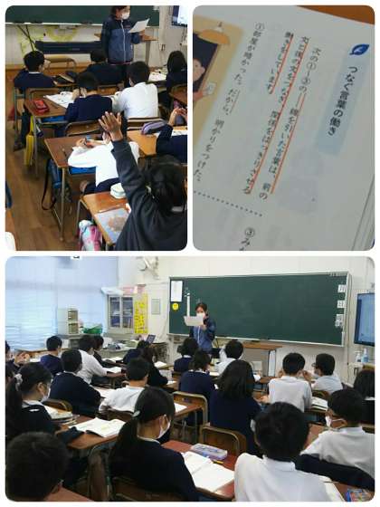 4年生が国語科で、文と文をつなぐ言葉の学習をしています。