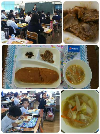 【パン・牛乳・豚肉のデミグラスソース・スープ・うずら豆のグラッセ】