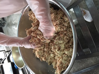 12月9日 給食 公開日 2020/12/09 更新日 2020/12/09 お知らせ ツナととうふ、その他の材料を混ぜ合わせて、コネコネコネコネ、よく混ぜます。 そうです。本日のハンバーグも調理員さんの手ごねによるものです。 手間と愛情をかけて調理された給食はいつもおいしいです。 児童に「ハンバーグの味はどうですか。」と聞くと、一様に「おいしい。」と返事が返ってきました。 【パン・牛乳・とうふハンバーグ カリフラワーのスープ煮・固形チーズ】