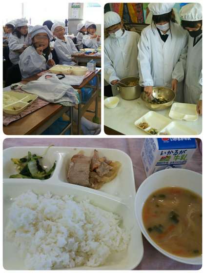 さつまいものみそ汁・きくなとはくさいのごまあえ】