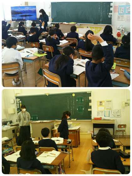 下の写真は、「とんぼりとんぼり歩く」様子を児童が演じているところです。
