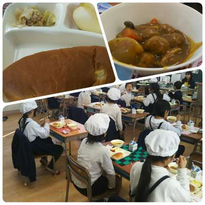 【パン・牛乳・ミートボールと野菜のカレー煮