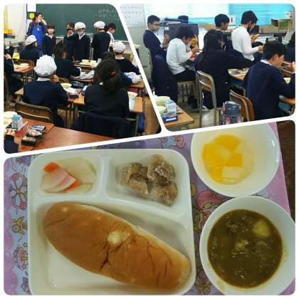 卒業祝い献立です。近江牛の再々登場(しかもカレーシチュー)、フライドチキン、ゼリー・・・・・・と、どれをとっても子どもたちに嬉しい料理であふれています。