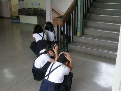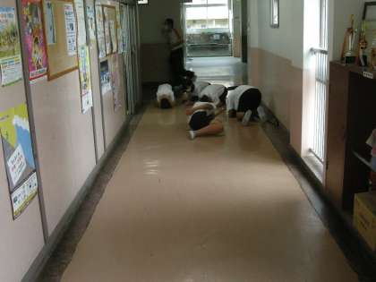 児童の皆さんは、清掃活動中のそれぞれの活動場所で、避難行動(自分の身を守る行動)をしっかりととることができていました。