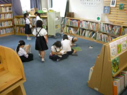 学校図書館で、それぞれが、「自分の好きな本」を選び、楽しそうに読書をしていました。