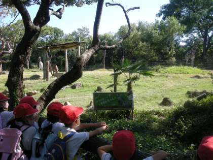 みんなで、色々な動物を見て回りました。「見て!見て!キリンがいるよ。大きいなあ〜」など、それぞれが歓声を上げていました。その後、木陰で昼食(お弁当)を仲よく食べました。