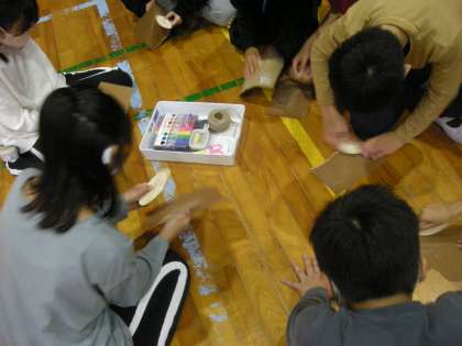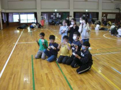 その後、体育館で思い出づくり(クラフト制作)に取り組みました。子どもたちは、各人が想い想いの作品を仕上げていました。