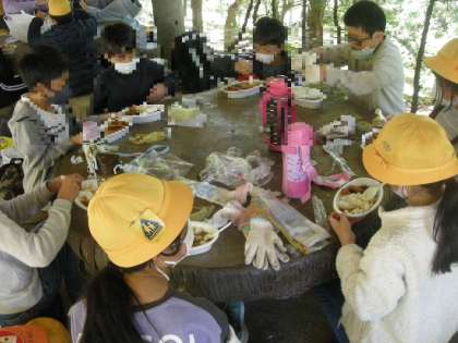 ようやく出来上がった「防災カレー」をみんなで食べました。苦労した分、子どもたちには、「これまでとは違う特別なおいしさ」を感じたのではないでしょうか。