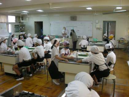 「緊急事態宣言」の解除に伴い、新型コロナウイルス感染症対策を講じ、5・6年生は調理実習をはじめました。
