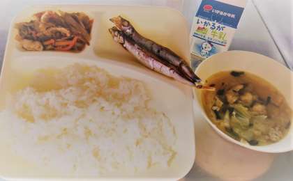 今日も、とってもごはんによく合う和食が並びました。給食の「きんぴらごぼう」には、豚肉も入っていてボリュームたっぷりです。今日の献立には、ししゃも、鶏肉、豚肉が入っていて、たんぱく質をしっかり摂ることができました。