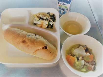 今日も、しっかりと野菜がとれるメニューが並びました。グラタンのホワイトソースとほうれん草はとても相性がよく、香ばしいおこげとともに子どもたちはモリモリ食べていました。