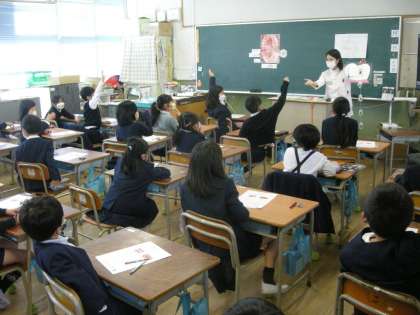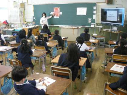 11月29日(月)2・3限、大阪市教育員会より歯科衛生士(2名)をお招きし、2年生を対象に、歯みがき指導を実施しました。