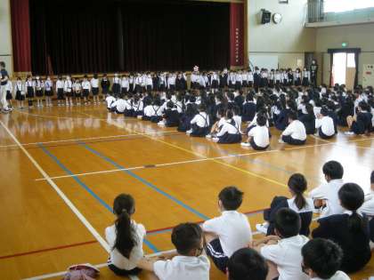 学校長のあいさつ、6年生の歓迎のことば、1年生のお礼のことば、校歌紹介と続きました。すべての児童が、仲良く元気に学校生活を送ることを願っています。