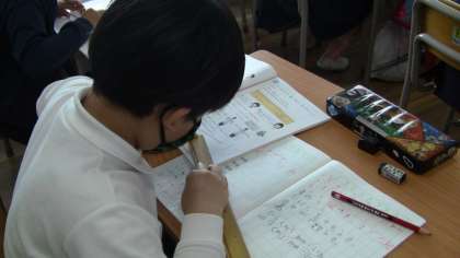今日は、2年生がものさしを使って、線の長さを細かく読み取って、cmとmmを使って表す学習をしていました。写真にもあるように、どの子もいっしょうけんめいに取り組んでいました。