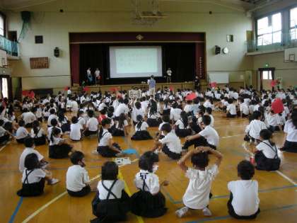 木曜日の朝の活動として、児童が中心となって「児童集会」を実施しています。異学年グループ(1〜6年)で活動することで、より良い仲間づくりをすすめています。