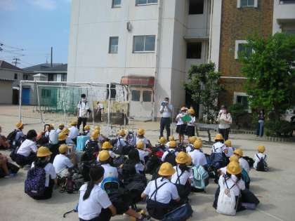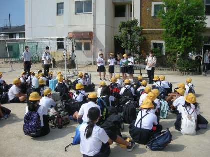 出発式の様子です。児童の司会進行のもと、学校長の話、代表児童あいさつがありました。