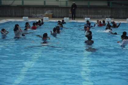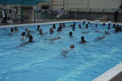 “自分の命は自分で守る”ということ念頭におき、各学年で着衣水泳を行いました。着衣状態では、なかなか上手く泳げなかったり浮かなかったりと、子どもたちは着衣水泳の難しさを感じていました。