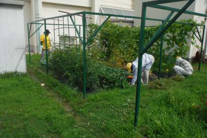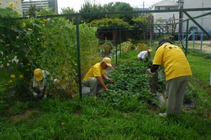 朝から暑いのなか、愛育会の皆さんが学習園の草抜きをしてくださいました。ありがとうございました。ひょうたん、へちま、トマト、芋や苗も順調に生育していました。