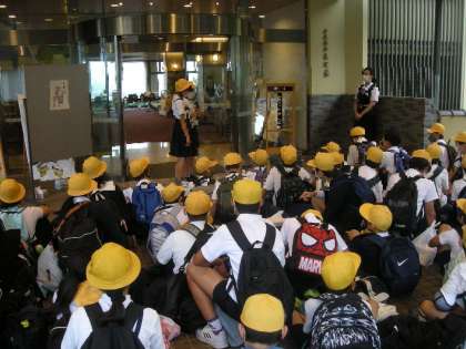 17:00、宿舎到着。代表児童の司会進行のもと、開舎式を行いました。「1泊2日、よろしくお願いします。」