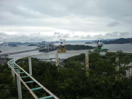 霧雨も上がり、瀬戸大橋がきれいに見えていました。6年生は、スリルを楽しんでいました。